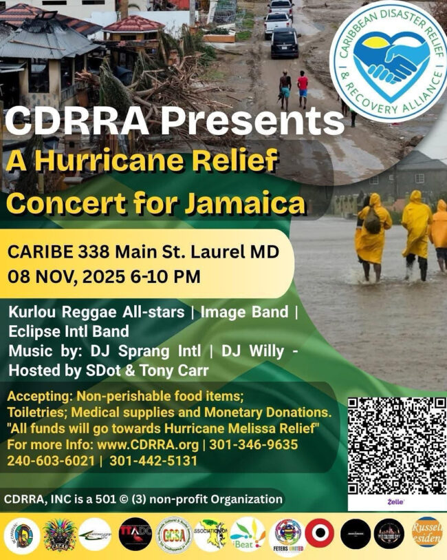 🎶 Caribbean Cargo DC Sponsors Hurricane Relief Concert for Jamaica 🇯🇲 Caribbean Cargo DC is proud to join forces with the Caribbean Disaster Relief and Recovery Alliance (CDRRA) to support a powerful night of music, community, and compassion. On Saturday, November 8, 2025, the DMV’s Caribbean community will gather at Caribe Express in Laurel, MD…